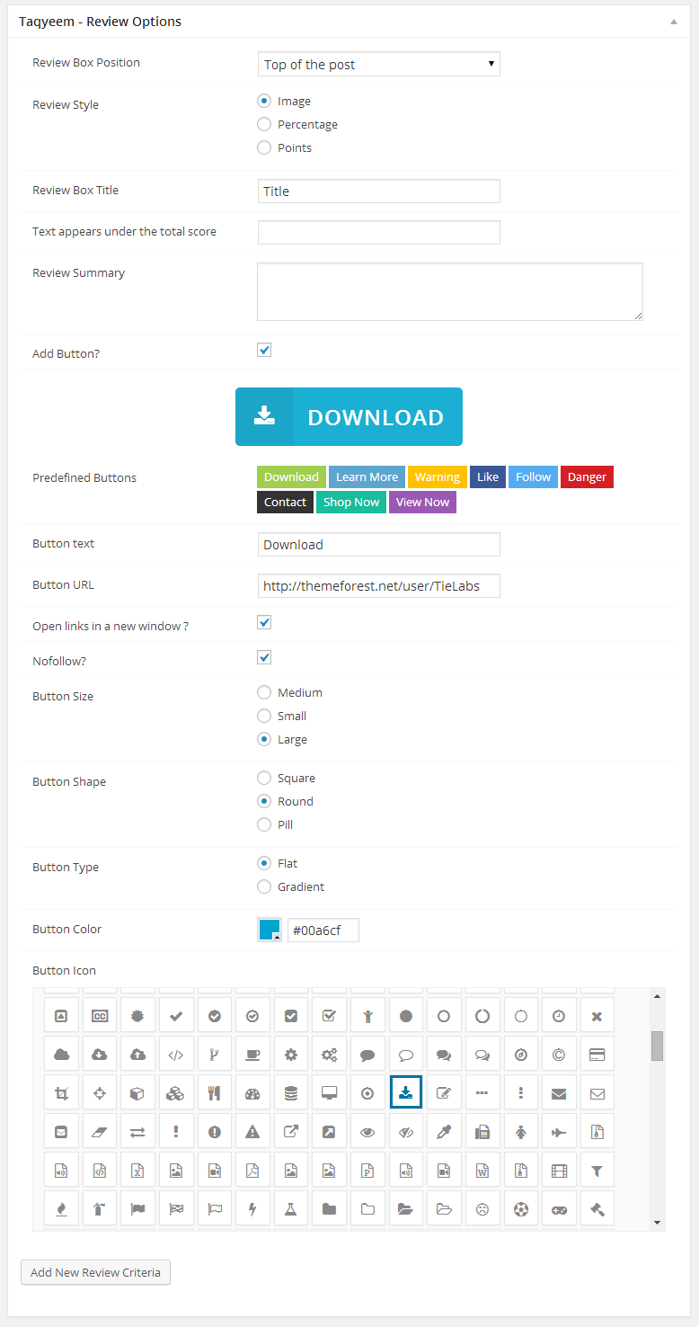 - In the Taqyeem - Review Options box .. Check the Add Button checkbox to display the button options.